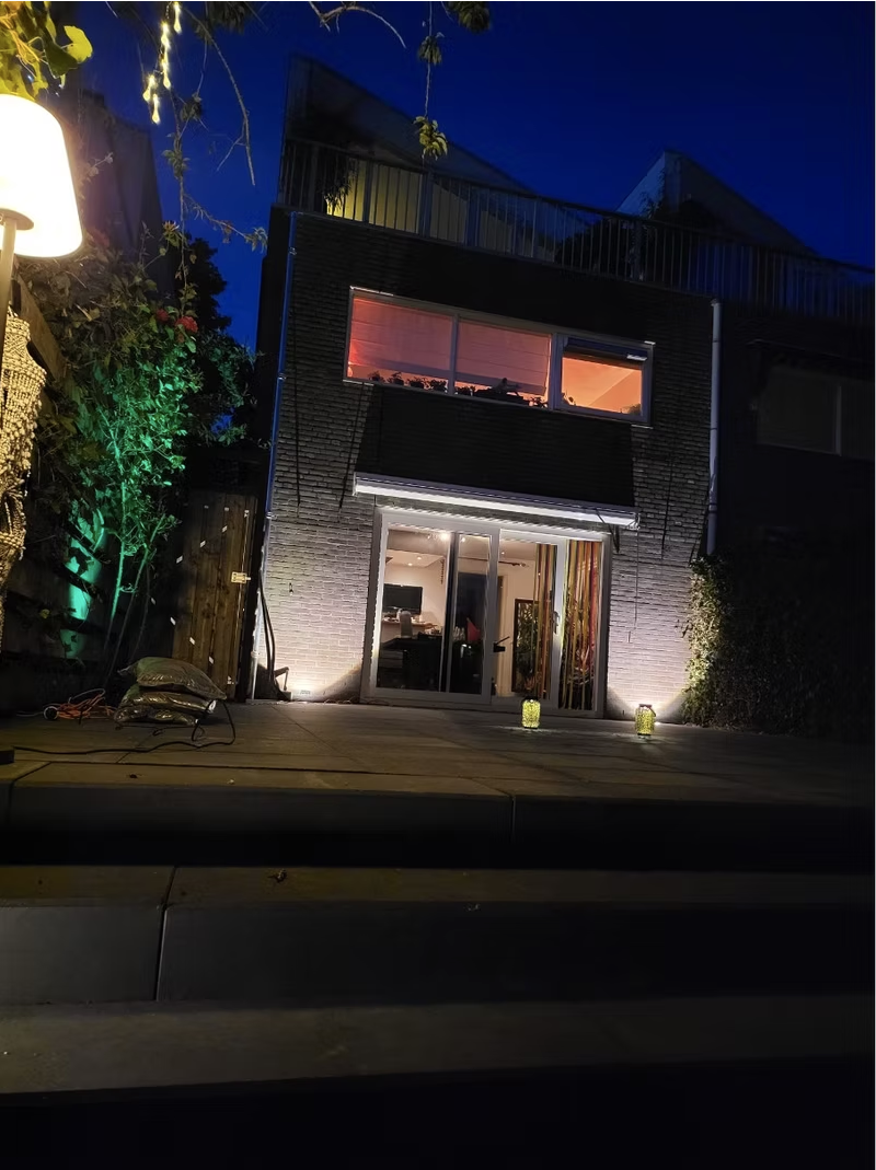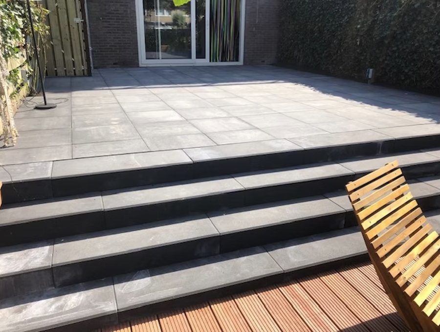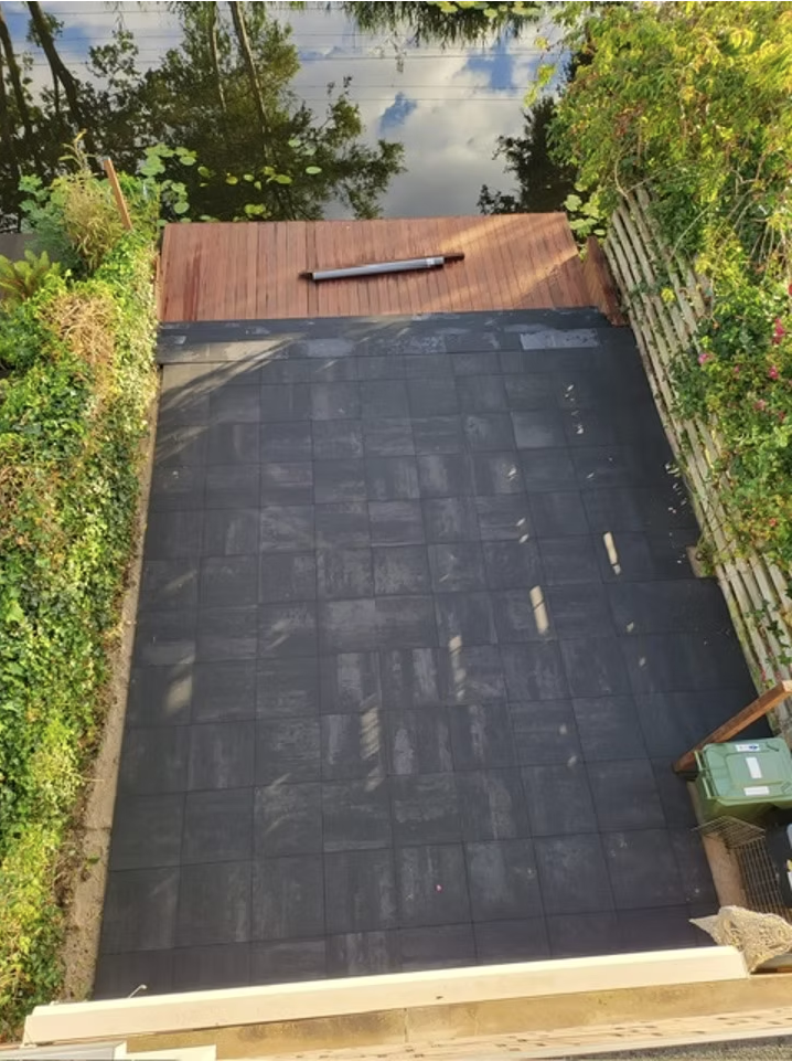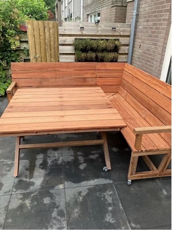 Ook mochten we voor deze klant hard houten tuinmmeubel maken en plaatsen van een walbeschoeiing ,electra,verlichting , vlonder op de 2e etage