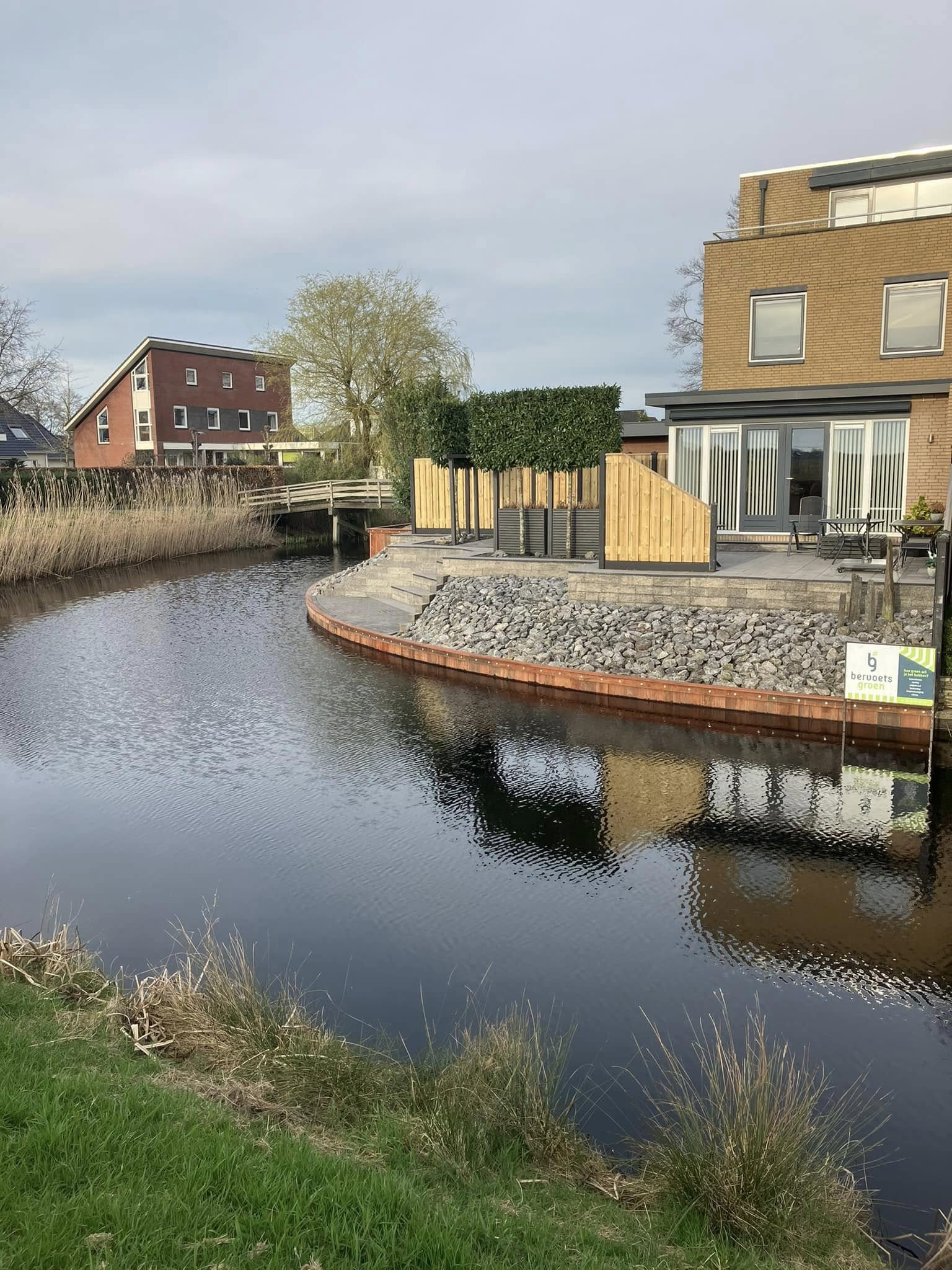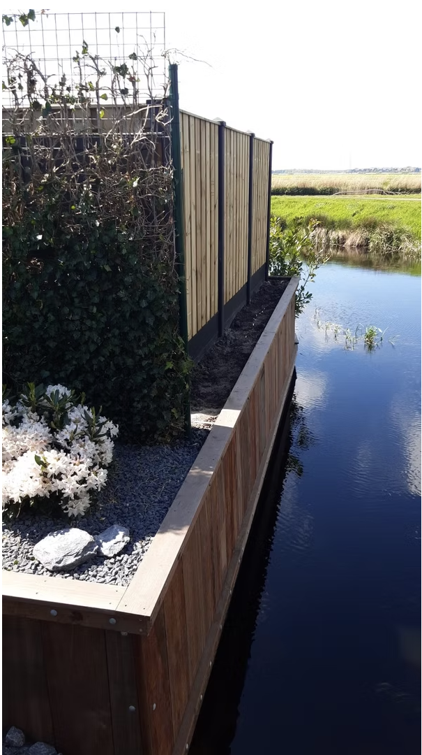 Een ronde walbeschoeiing zo vroeg deze klant in Heerenveen aan ons of we dit voor hun wouden uitvoeren. Het rond maken van een walbeschoeiing in een vak apart maar niet onmogelijk zo kun je zien op de foto’s.